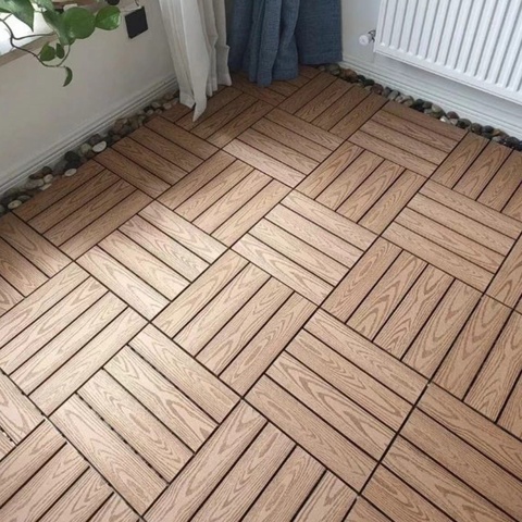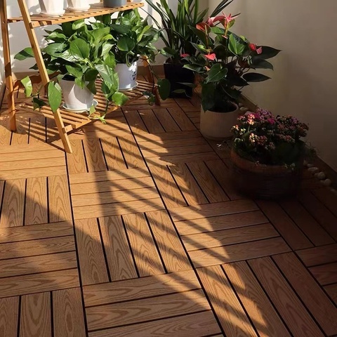 Composto 300*300mm Veranda Wpc Decking Grão De Madeira Telhas Interlock Flooring para Pátio Ao Ar Livre Telhado